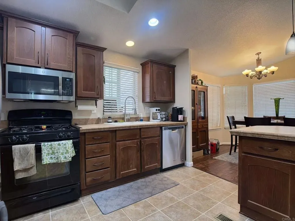 3BR/2BA single-story double-wide in the all-ages Lakefront Manufactured Home Park in Lakeside. Located on a quiet street with no through traffic, this home features wood-look vinyl plank flooring in the living areas, carpeted bedrooms, a skylight for natural light, and in-home laundry. Recent updates include a newer HVAC system (2024), appliances (2022), refreshed primary bathroom tile (2024), and a second layer of roofing installed about a year ago. Enjoy community amenities including a pool and picnic area. With space rent of $1,284/month, this home offers ownership at a monthly cost similar to renting nearby. Conveniently located near freeways, shopping, dining, and Lake Jennings.