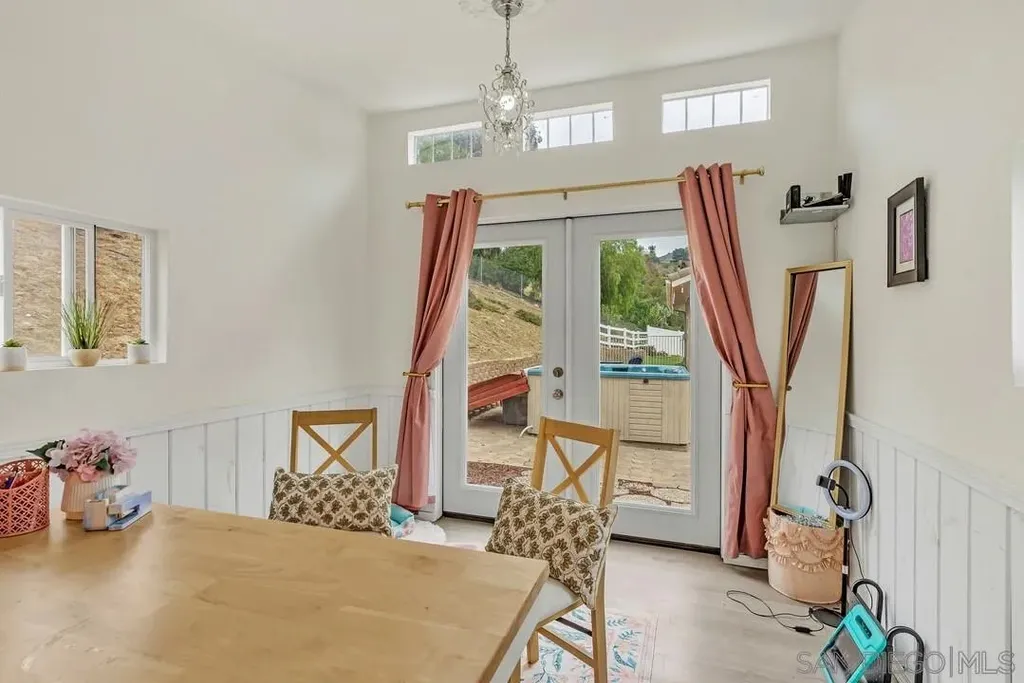 Submit an offer now and celebrate the holidays in your new home! BLACK FRIDAY SPECIAL $5,000 CREDIT to buyer towards new exterior paint or any desired use. NO HOA, OWNED SOLAR...and room for a pool, storage for your boat/RV/toys and maybe even an ADU. Amazing breezes, gorgeous sunsets & mountain views delight you daily at this home. Highly desired bedroom & full bath on the main floor, 20 panel solar system with favored NEM2, new water heater, updated kitchen and baths. Main home has 4 bedrooms. 5th optional room is a detached den that stays cool/warm with its own mini split HVAC - the perfect quiet escape for a zoom meeting, creative workshop, play zone or even a guest sleeping room. Primary bedroom has westerly views, walk-in closet, steam shower, soaking tun & mini-split HVAC for those times that you only want to heat or cool your bedroom. Tucked away at the end of a cul de sac, enjoy privacy on this elevated, oversize lot. Minutes from the 8 freeway schools & shopping. 30 minutes away from San Diego's main attractions, beaches, airport, and yet feels like a whole different, relaxed, world! Living here provides for the ultimate outdoor lifestyle: hiking trails, fishing, boating & camping at Lake Jennings and Flinn Springs 40-acre County Park. Whether outdoorsy means you like to drink wine on a patio with a view, or you like to take your dog on a hike, this place has both for you!