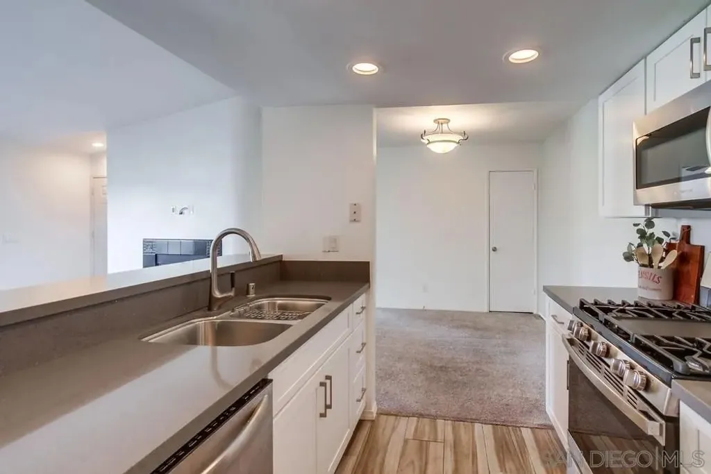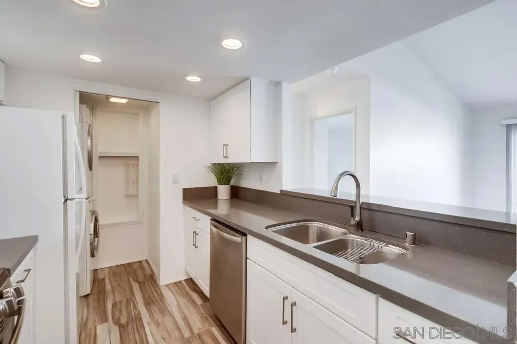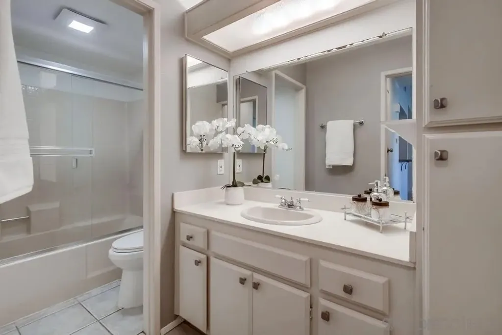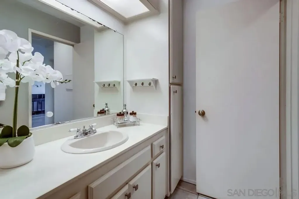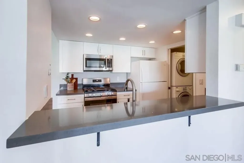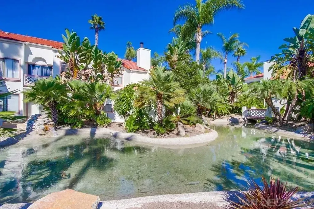 Fantastic top floor two bedroom two bath home in Casablanca, one of Rancho Pe asquitos' most sought after communities. This light and bright unit features a beautifully updated kitchen with newer cabinets, solid surface countertops, stainless steel appliances, and recessed lighting. The spacious living room offers a stunning fireplace and opens to a generous private balcony with an extra storage closet. The primary suite includes vaulted ceilings, a refreshed bathroom with a newer vanity, and ample closet space. The secondary bath also provides impressive storage. Enjoy peaceful northern mountain views, one covered parking space with built in cabinets, plus an additional assigned space located directly in front of the unit. Stackable washer and dryer are conveniently located inside. The community is known for its serene water features, lush landscaping, and inviting pool area. All of this within the award winning Poway Unified School District and close to shopping, restaurants, and the post office. Casablanca offers resort style living with multiple pools, community center, hot tubs and beautiful, serene water features plus lush, mature landscaping throughout. Located in the highly acclaimed Poway Unified School District. Very close to a major grocery shopping center, YMCA, the Rancho Penasquitos library, post office, numerous restaurants and shopping. Welcome Home!