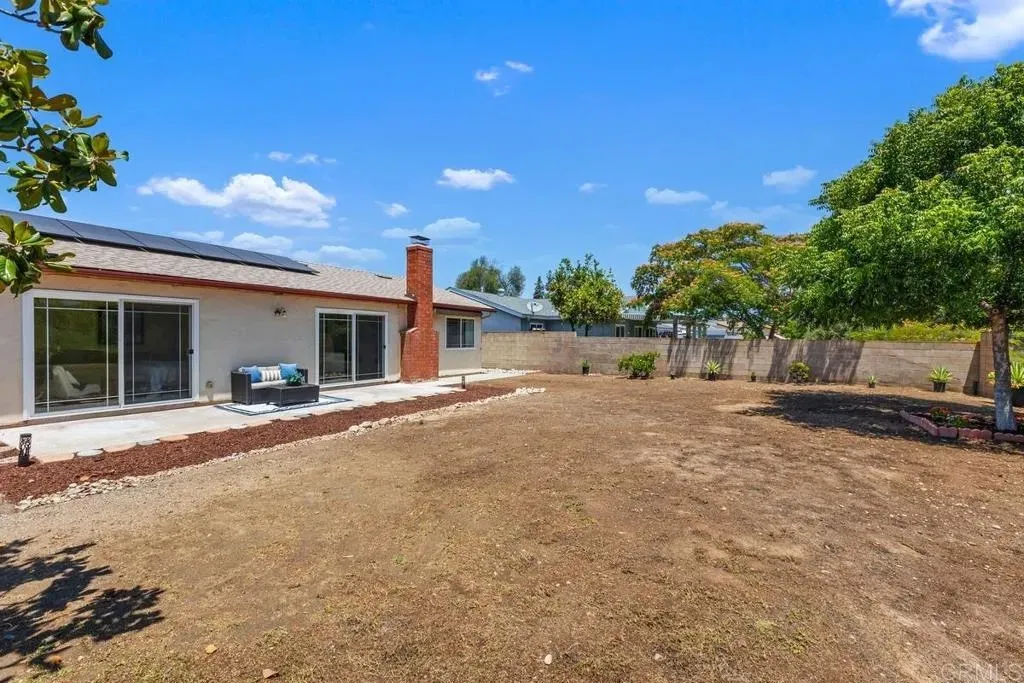 Nestled in the charming community of Santee this delightful home sits on a spacious .22 acre lot that backs up to the serene Santee Lakes, and offers endless potential. Inside, natural light streams in creating a comforting space. The wonderful flow of the living room, kitchen, and dining space make entertaining and relaxing with family or friends easy. This lovely home offers peace of mind with a newer roof, furnace and AC, ensuring comfort year-round. The acoustic ceilings have been stylishly removed, enhancing the home's airy feel. Plus, updated plumbing and a remodeled primary shower add to the contemporary charm. Dual pane windows and solar panels help make this home energy efficient and bring enhanced savings. A detached garage connects to the house by a breezeway that creates a cozy covered patioideal for enjoying California's beautiful weather. Enjoy the beauty of drought-tolerant landscaping with updated drip lines, perfect for maintaining the vibrant front and backyards. Plus, the spacious yards serve as a blank canvas with endless possibilities, whether envisioning a garden oasis, a playground, possible ADU or an entertainment haven, there's more than enough room to bring dreams to life. Its central location makes it easy to enjoy Santee Lakes, where you can enjoy walking trails, fishing, playgrounds and more, Carlton Oaks Golf Course, Shopping at Trolley Square or sports at the Sportsplex. Don't miss out on this incredible opportunity to enjoy all this delightful property and its fantastic location.