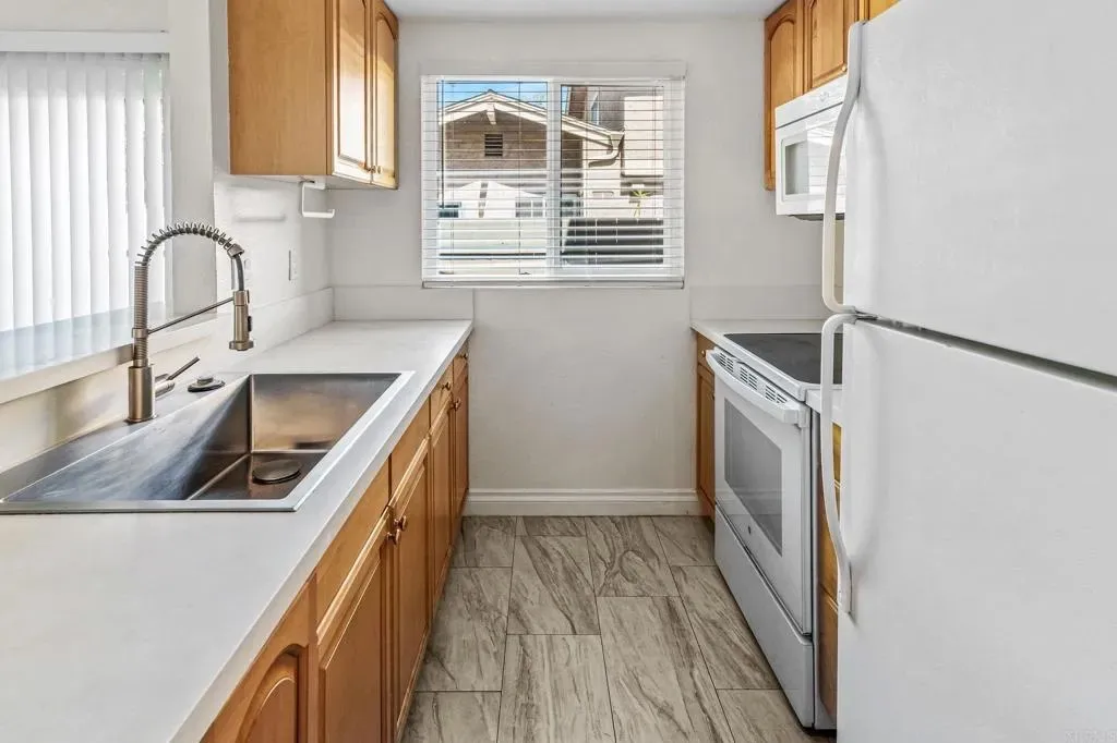Welcome to 965 Jamacha unit A, Most desirable Unit model in the community! All downstairs, and move-In Ready 2-Bedroom Condo with Modern Upgrades, Patio & Garage. Welcome to this stylish and move-in ready 2-bedroom, 1-bath condo offering 882 sq ft of comfortable, single-story living. Recently updated throughout, the home features new flooring, quartz countertops, and a fully remodeled bathroom with a marble dual-sink vanity and brand-new walk-in shower. Freshly painted, with brand new baseboards! Step outside to your private patio, ideal for relaxing or entertaining. Enjoy peace of mind with brand-new dual-pane windows and a new patio doora premium upgrade valued at $20,000 in upgrades alone! The home includes all fixtures, plus washer, dryer, and refrigerator, making it truly turnkey. A private garage provides secure parking and extra storage. Conveniently located near shopping centers, schools, and freeway access, this condo offers the perfect blend of comfort, style, and locationideal for first-time buyers, or investors with high rental rates.