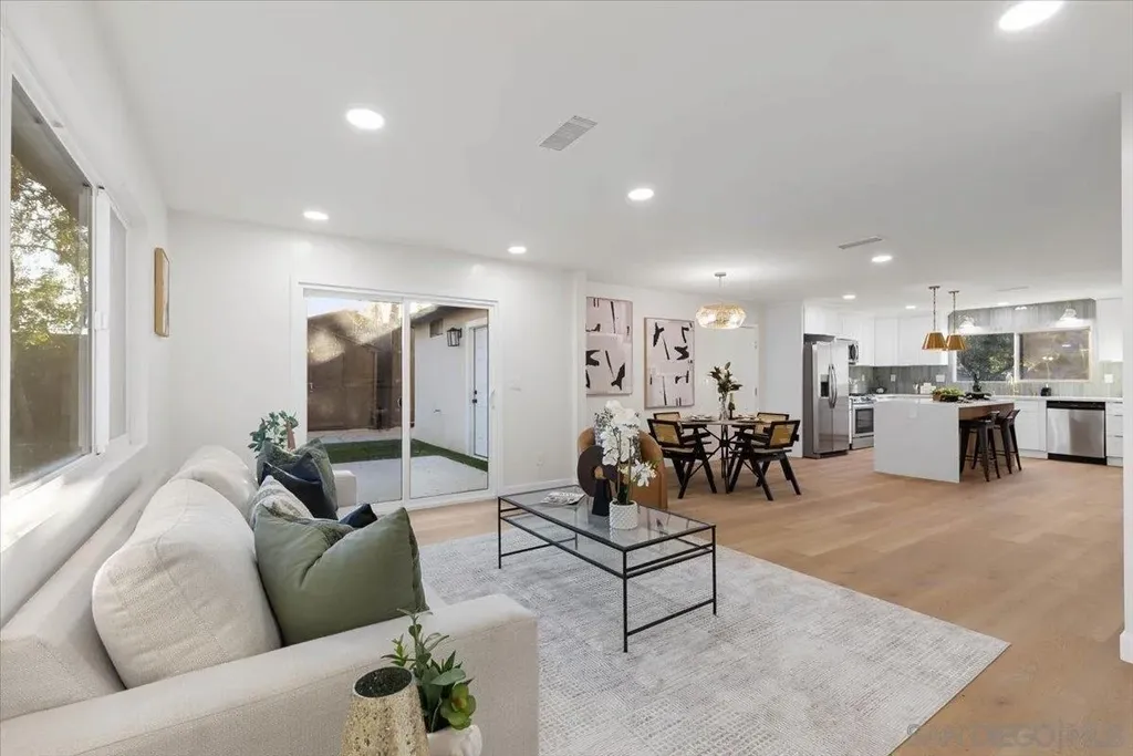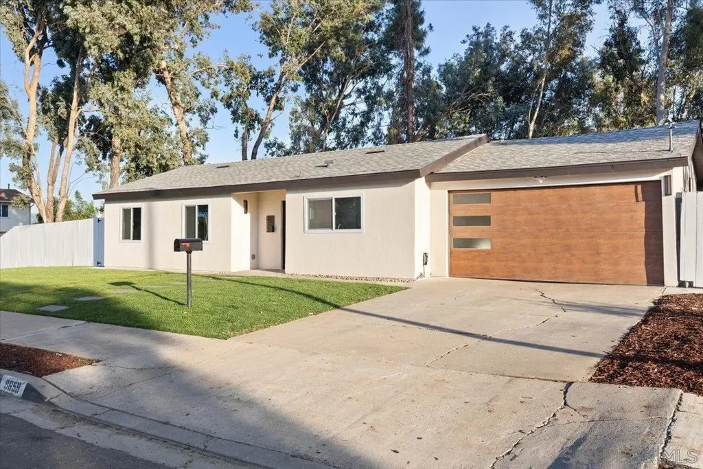 PRICED TO SELL WITH BUYER INCENTIVES! Welcome to 9659 Mast Blvd, a beautifully renovated 4-bedroom, 3-bathroom home situated on a spacious 0.26-acre corner lot in the heart of Santee. Offering 1,485 sq. ft. of modern living space and a 2-car garage with a brand-new garage door, this home has been thoughtfully updated with comfort and style in mind. Step through the modern new front door into an open, light-filled layout featuring brand-new LVP flooring throughout, recessed lighting, and dual-pane windows for energy efficiency and sound reduction. The centerpiece is the brand-new kitchen, showcasing quartz countertops, a stunning island with waterfall ends, and all-new appliances. Designed for today's lifestyle, it flows seamlessly into the open-concept dining and living room, creating the perfect space for entertaining and everyday living. Modern light fixtures and a fresh neutral palette from the new interior and exterior paint elevate the design. The bathrooms have been fully renovated with new vanities, stylish tiled showers, and new tile flooring, blending function with contemporary finishes. The permitted additional bedroom and bathroom add flexibility for guests, multigenerational living, or a home office. Major upgrades include a new HVAC system, new fencing, new sod in the front yard, and new concrete poured in the backyard for additional entertaining space. Outdoors, the expansive lot offers endless opportunities for gatherings, gardening, or future expansion. Conveniently located near schools, parks, shopping, and freeway access, this turnkey home is the perfect!