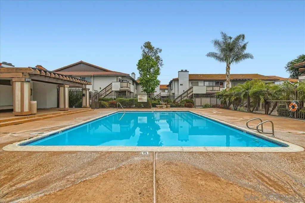 Nestled in one of Santee's most desirable gated communities, this beautifully updated 2-bedroom, 1.5-bath upper-level unit offers the perfect blend of comfort, style, and convenience. Step into a bright and open living space featuring a cozy fireplace, plantation style shutters, and in-unit Washer and Dryer. The kitchen is tastefully remodeled with Corian countertops, stainless steel appliances, and ample cabinetry - ideal for cooking and entertaining. Enjoy durable tile and laminate flooring throughout, a newer HVAC system, and dual-pane energy-efficient windows. The primary bedroom boasts custom built-in closets and an entertainment center, while the modern bathrooms feature updated tile and finishes. You'll love the private balcony entrance - perfect for relaxing or entertaining guests. The unit includes two parking spaces: one detached enclosed garage and one assigned outdoor space, both conveniently close to the unit. Community amenities include a sparkling pool, playground, and landscaped common areas. Located near top-rated schools, the YMCA, Santee Sportsplex, the San Diego River, Town Center Park, great shopping and dining options, and with easy access to the 52 and 67 freeways - this home truly has it all!