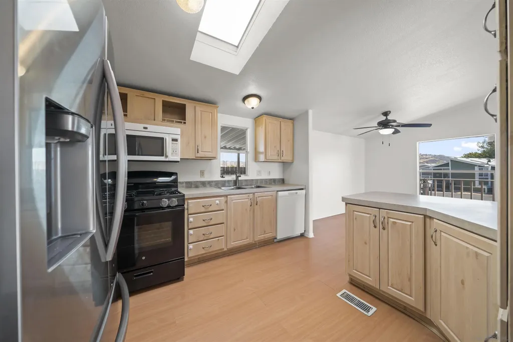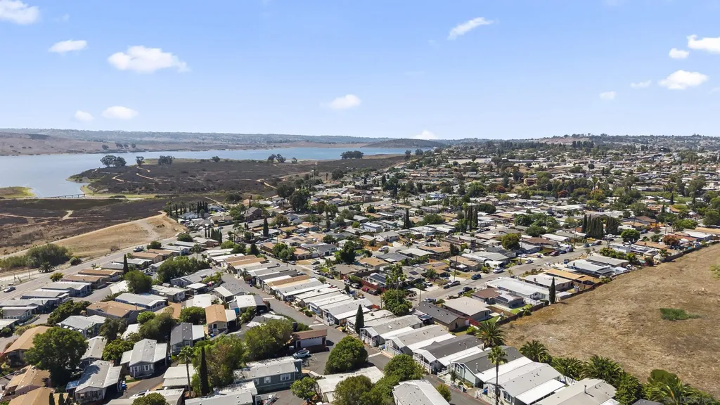 Welcome to this charming 3 bedroom, 2 bath manufactured home located in the desirable Lakeview Manor community of Spring Valley. Recently refreshed with new exterior/interior paint this home is move-in ready and full of comfort. Step inside to find wood laminate and ceramic tile flooring throughout, vaulted ceilings, dual-pane windows, and ceiling fans in every room. Stay cool year-round with the addition of central A/C. Enjoy your morning coffee or evening unwind from the covered front porch with tiled steps and flooring. Take in gorgeous views of the reservoir-a peaceful backdrop you'll love every day. This affordable family-friendly community offers resort-style amenities includes a clubhouse, billiards room, playground, basketball court, and sparkling pool. Conveniently located next to Sweetwater Reserve and only minutes to South Bay, East County, and Downtown. Financing available - don't miss this opportunity!