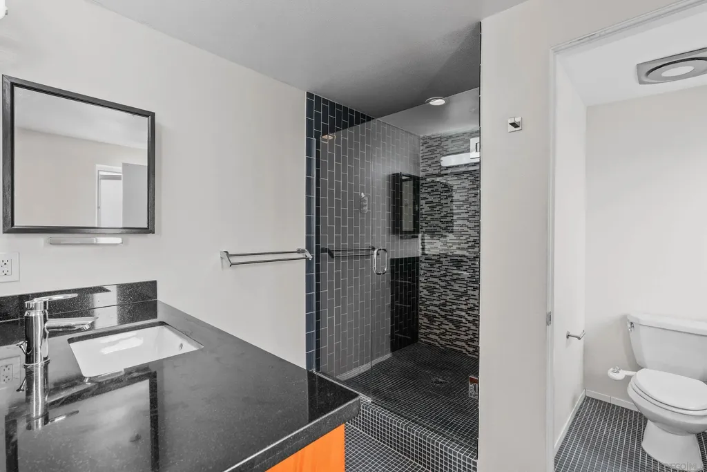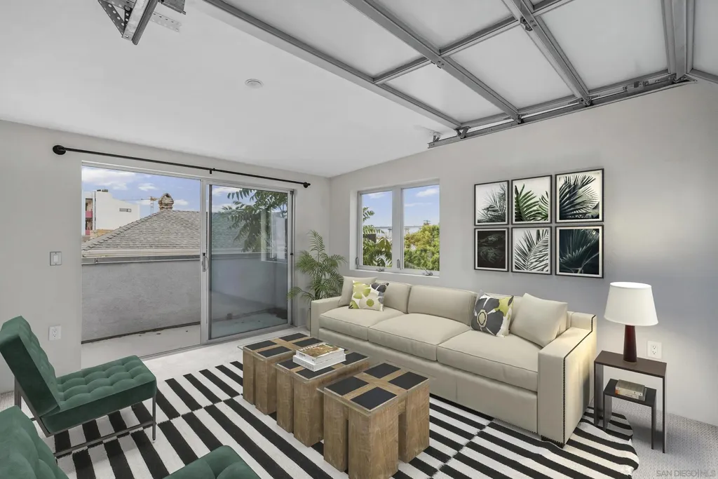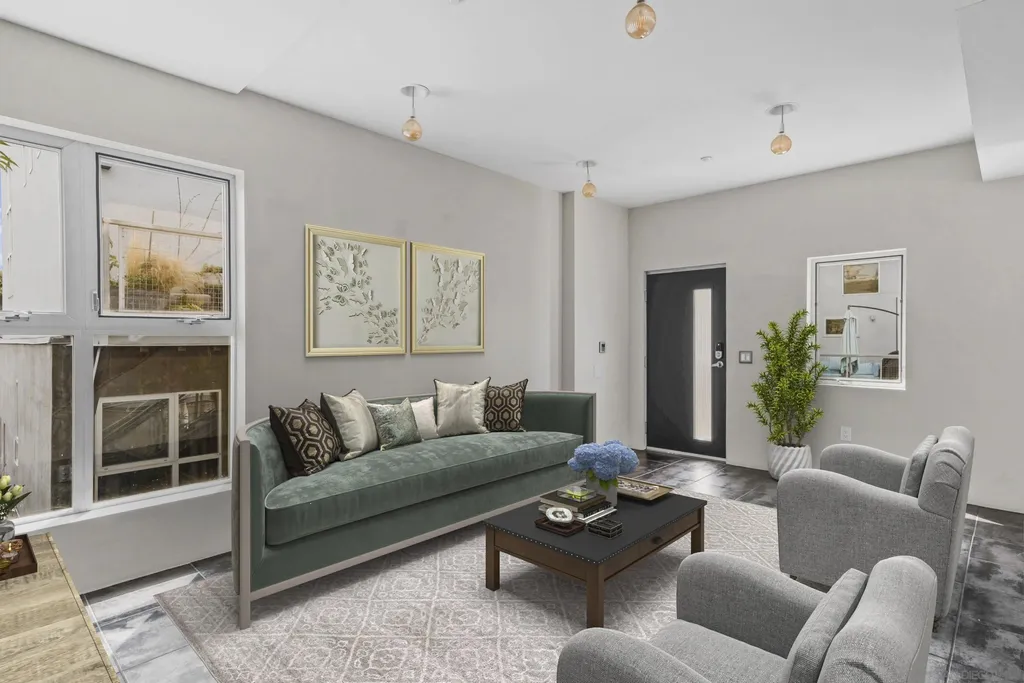 VA APPROVED! Located just 2 blocks from Downtown San Diego, this two bedroom (with optional 3rd) live-work townhouse is unlike anything on the market. Enter the gated complex from your own private two-car stacked garage (with power lift) and head to your industrial two-story loft townhouse that shares no walls or floors with anyone else in the complex, giving you unprecedented privacy in the city. Inside you're greeted by incredible modern design and abundant natural light. The large and well-appointed kitchen is the perfect space to entertain before heading out for dinner and drinks. The downstairs bedroom has dual walk-in closets and its own en-suite bathroom, finished in seductive black and white tiles. Adjacent to the kitchen you'll find a half bath perfect for guests while entertaining. Enjoy views of the Coronado Bridge from multiple rooms and the upstairs balcony. The primary bedroom along with its walk-in closet and bathroom are enormous. Keep the upstairs loft as another living space or use it as a third bedroom; the choice is yours. Laundry in-unit! Walking distance to many restaurants, breweries, Petco Park, San Diego Harbor, the Rady Shell, and downtown San Diego. Barrio Logan has quickly become one of the trendiest, most vibrant neighborhoods in all of San Diego with its rich history, colorful murals, fantastic food, and abundant entertainment. Invest here before it's too late! This truly is an excellent property and must be seen to be appreciated. Some photos virtually staged.